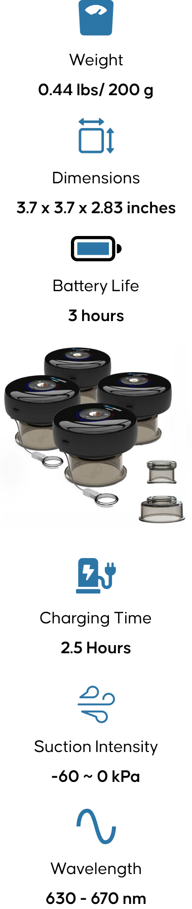 The powerful combination of dynamic cupping, red light therapy, and improved bloodflow gives you the ability to move through your days with smiles and motivation.